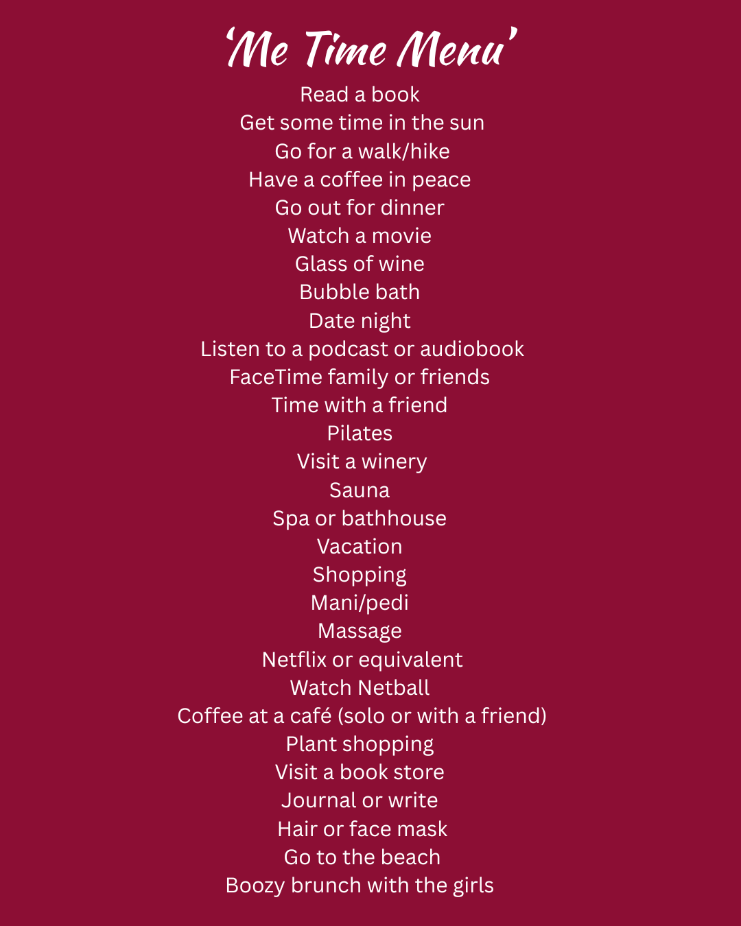 Would love to see what you come up with and lets flood the internet with positivity and show the World what it looks like when Mums show up for themselves and prioritise their happiness and wellbeing. Please tag me #fillingmycup #metimemenu #thepour so I can follow your journey.